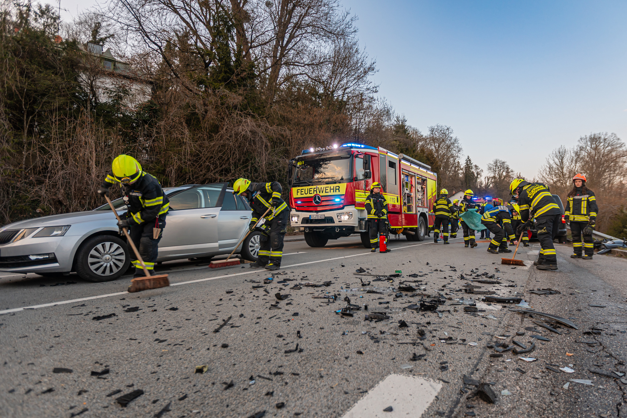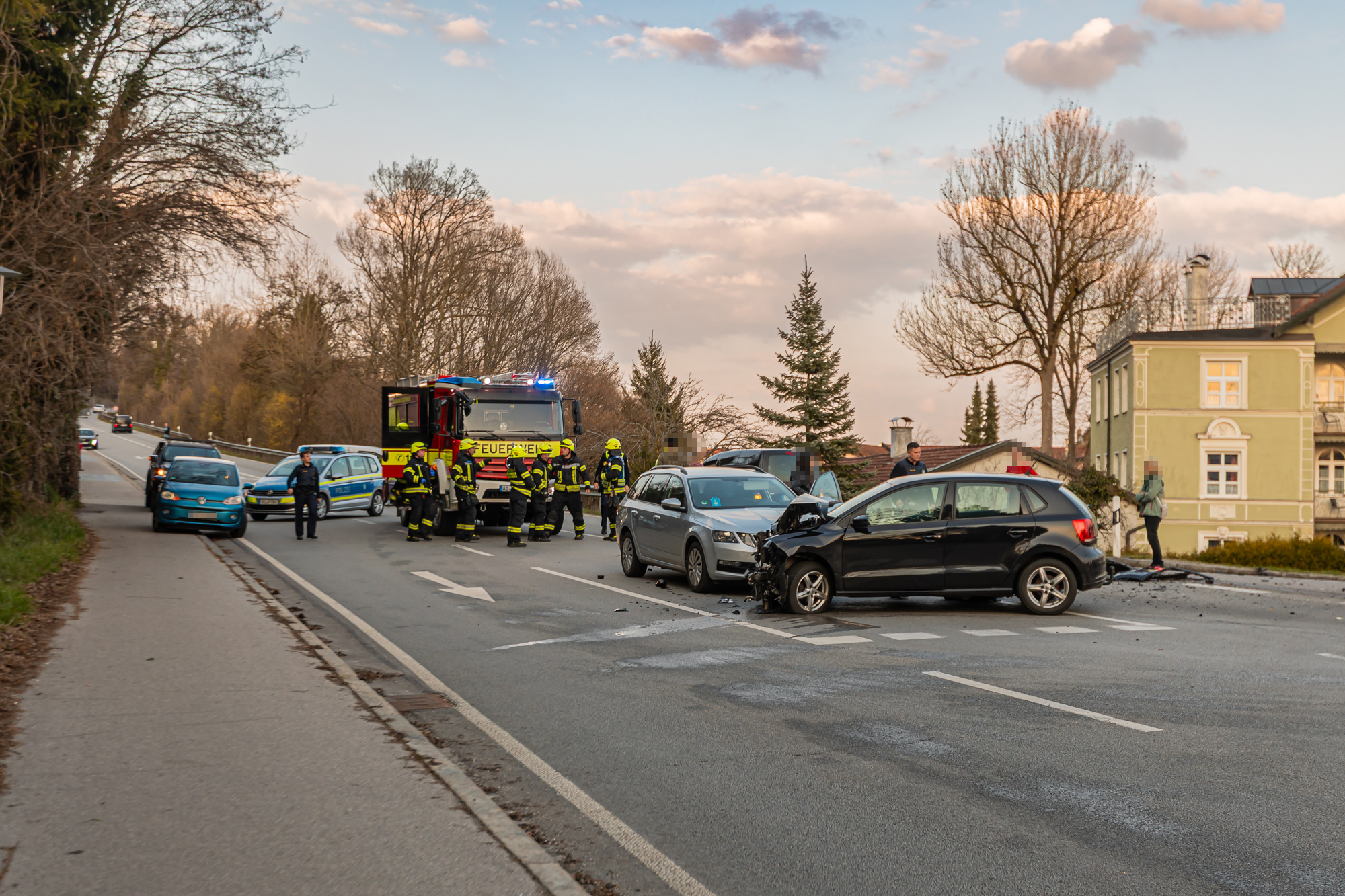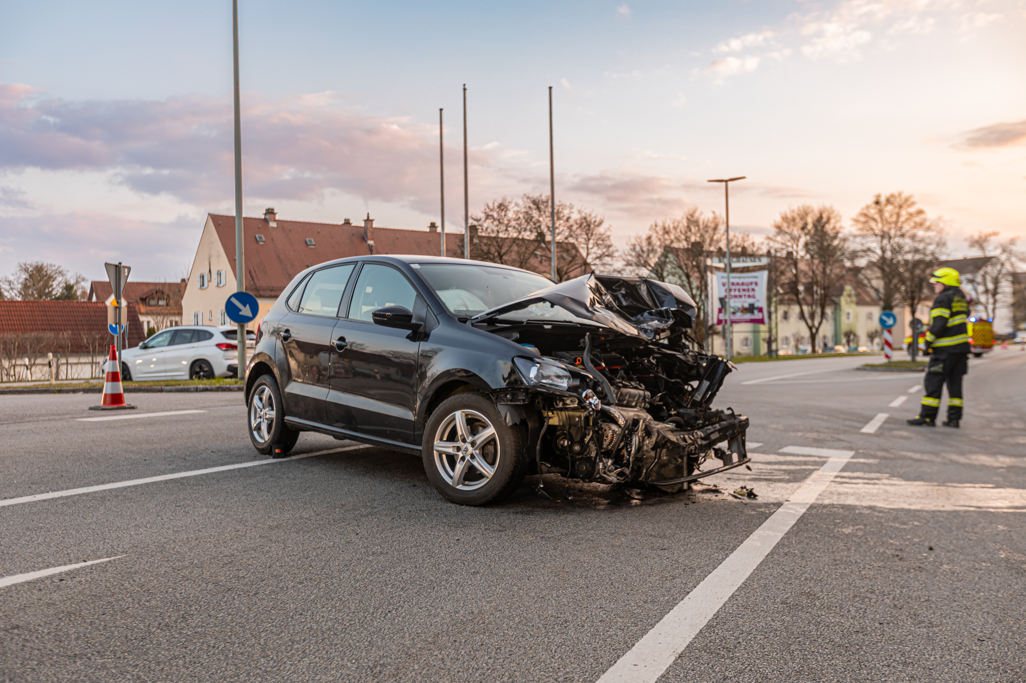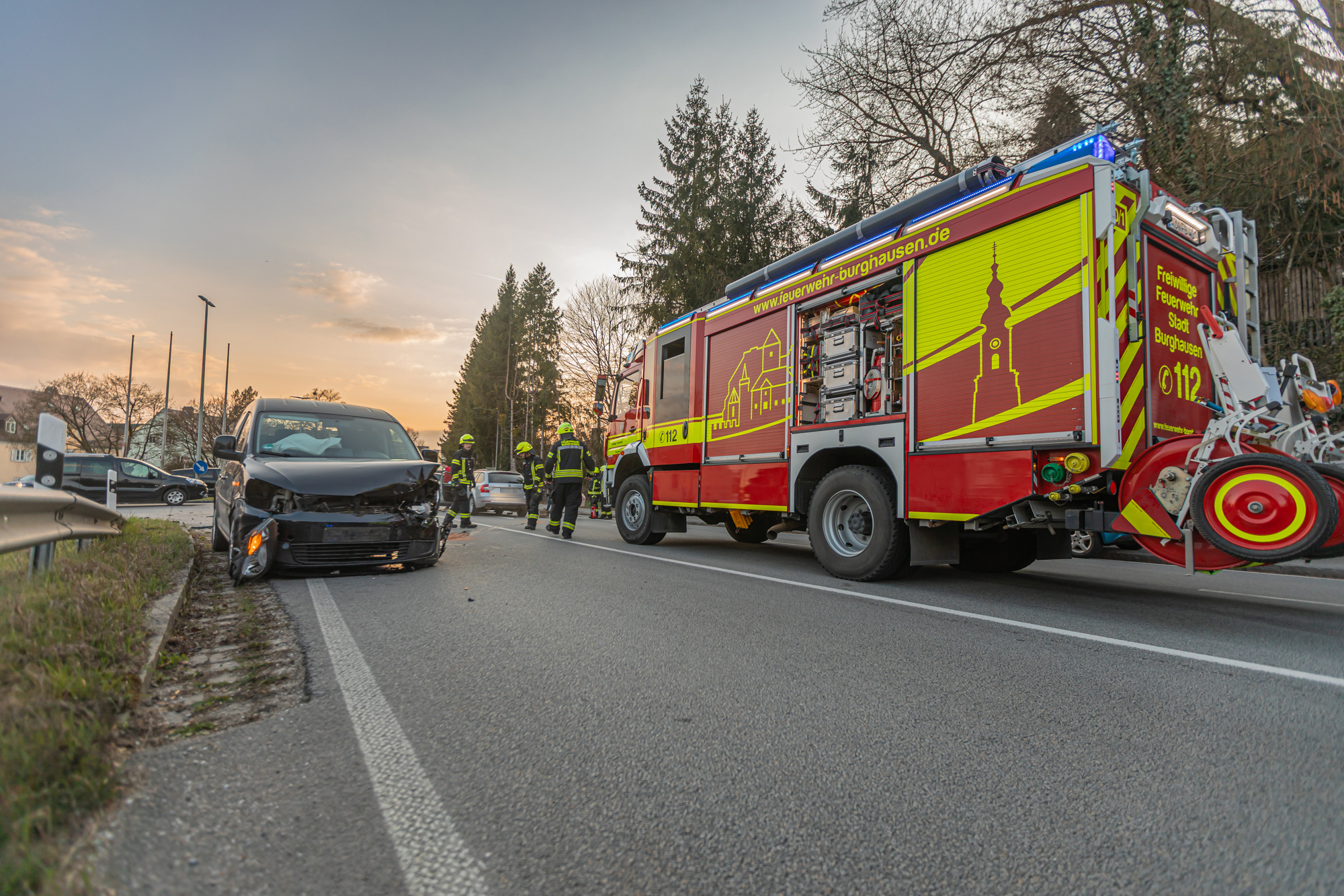 Nur wenige hundert Meter von der Unfallstelle des ersten Einsatzes am Montagmorgen entfernt wurde die Freiwillige Feuerwehr Burghausen in den Abendstunden gemeinsam mit Kräften des Rettungsdienstes und der Polizei erneut in die Tittmoninger Straße alarmiert. Im Begegnungsverkehr kam es zum Zusammenstoß zweier Pkw, wobei eine Person verletzt wurde. Ähnlich wie am Morgen, wurden auch hier die unfallbeteiligten Fahrzeuge stark beschädigt. Ausgetretene Betriebsstoffe mussten von der Feuerwehr gebunden und der Brandschutz sichergestellt werden. Zudem war eine Vollsperrung des betroffenen Streckenbereichs der Tittmoninger bzw. Berchtesgadener Straße für die Dauer der polizeilichen Unfallaufnahme und Bergungsarbeiten erforderlich. Die Freiwillige Feuerwehr Burghausen war mit 4 Fahrzeugen und 31 Einsatzkräften knapp 2 Stunden im Einsatz.