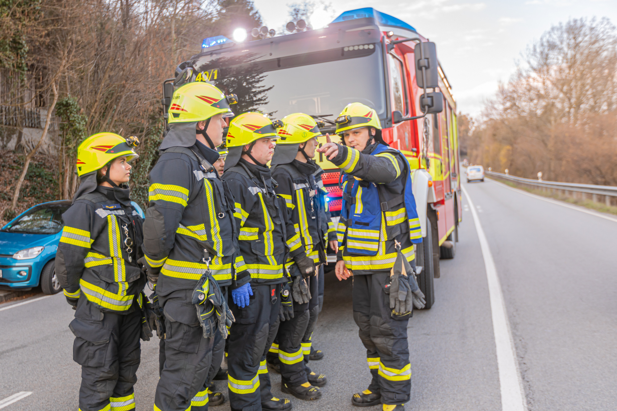 Fahrzeuge: Einsatzleitwagen (12/1), Hilfeleistungslöschgruppenfahrzeug (40/1), Rüstwagen (61/1), Gerätewagen Logistik 2 (56/1)