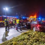 Zu einem Verkehrsunfall wurde die Freiwillige Feuerwehr Burghausen mit einigen weiteren Einsatzkräften am Freitagabend auf die B 20 alarmiert. Kurz vor der Abzweigung zum Industriegebiet Unterer Sulzbogen war ein Pkw auf einen Abschlepper aufgefahren, welcher ein am Fahrbahnrand abgestelltes Pannenfahrzeug aufnehmen wollte. Hierbei wurde eine Person verletzt und musste sich in rettungsdienstliche Erstversorgung begeben. Die Freiwillige Feuerwehr Burghausen stellte den Brandschutz sicher und reinigte die Fahrbahn von ausgetretenen Betriebsmitteln und Trümmerteilen. Die Freiwilligen Feuerwehren Piesing und Haiming waren zur Verkehrsabsicherung bzw. -umleitung im Einsatz, da die B 20 für die Dauer der Maßnahmen gesperrt werden musste. Die Freiwillige Feuerwehr Burghausen war mit 34 Einsatzkräften und 4 Fahrzeugen im Einsatz.